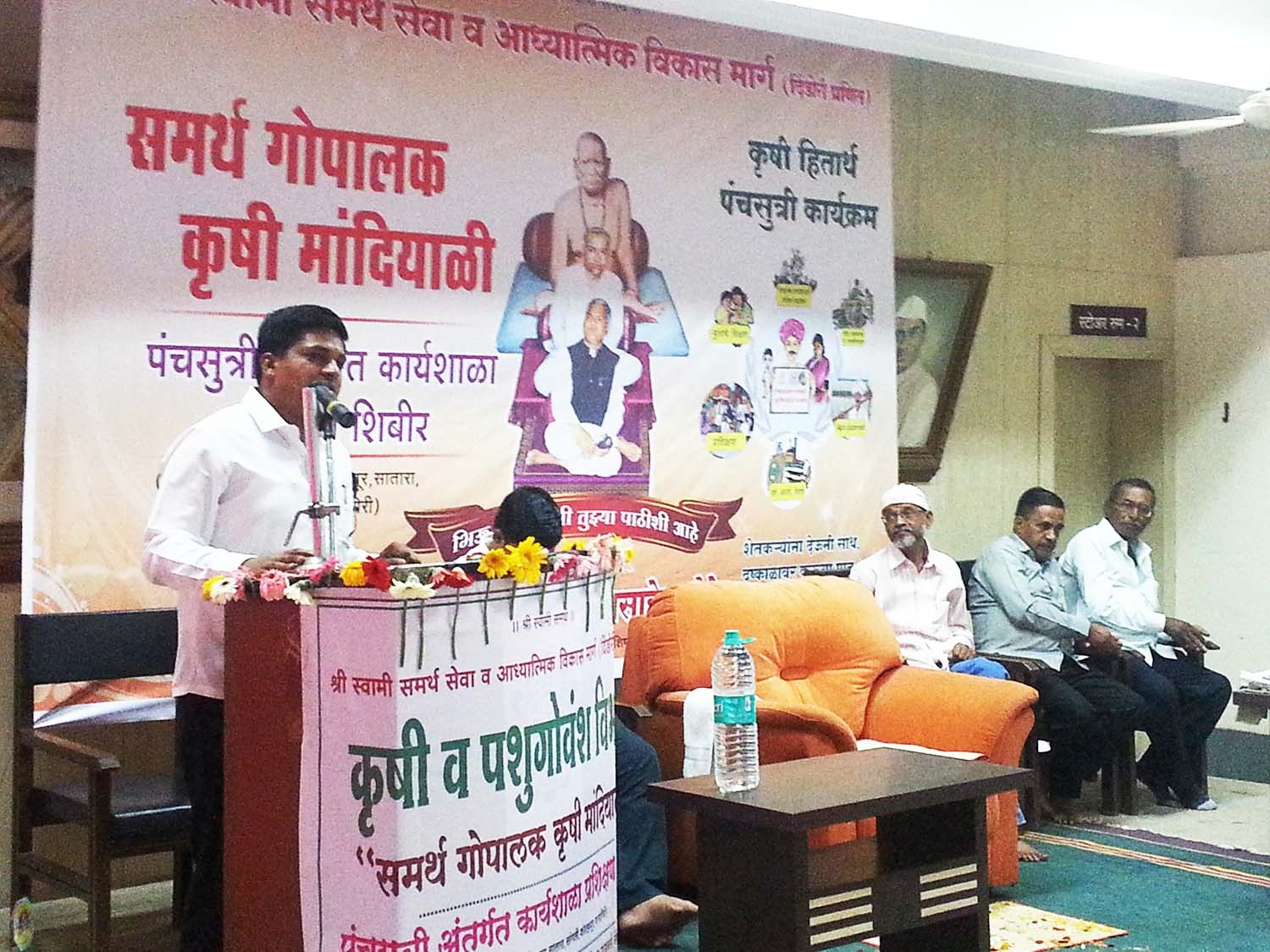 दिंडोरी प्रणित कृषी हितार्थ पंचसुत्री कार्यक्रम अंतर्गत विविध महत्वाच्या विषयावर कार्यशाळेवे प्रतिवर्षी आयोजन करण्यात येते व मोठया संख्येने शेतकरी व पशुपालक उपस्थीत असतात. |